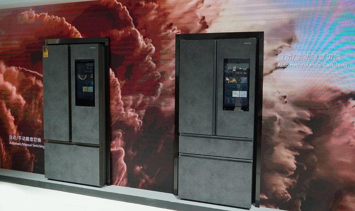 海信冰箱银河智能大屏562(右)与火箭智能大屏602(左)亮相2019AWE
